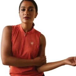The lightweight fabric of this base layer is infused with moisture wicking technology that helps you handle the heat while training in the saddle. Revel in the sleeveless top’s unrestricted movement and look top notch in its flattering style.
