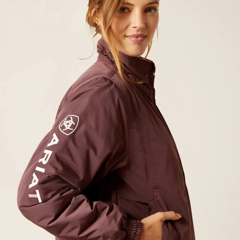 The Ariat Stable Jacket is a water and wind resistant jacket with a lightweight polyfill quilted lining. Featuring a mock collar, fitted hem and logo embroidery as well as zippered entry for team embroidery.