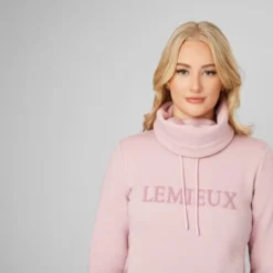 There’s a textured bouclé LeMieux graphic on the chest and soft-touch metal detailing for added style. We’ve also included discreet pockets and slanted side seams that reduce bulk when layered under a coat or jacket.