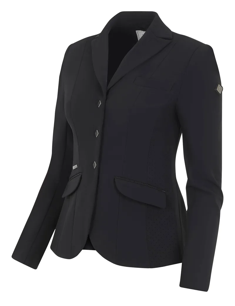 The stunning new Dynamique Show Jacket has been designed with your competition performance in mind. Vented side panels and sports mesh lining to the front provide the ultimate breathability, combined with superior stretch and recovery so that the rider is unrestricted and free to move. A subtle beaded trims on pocket edges and back belt panel add a touch of luxury sparkle and creates a flattering silhouette and stylish appearance. Fastened with a front zip and custom LeMieux press stud for stunning practicality, this Show Jacket is a must-have for all competition riders.