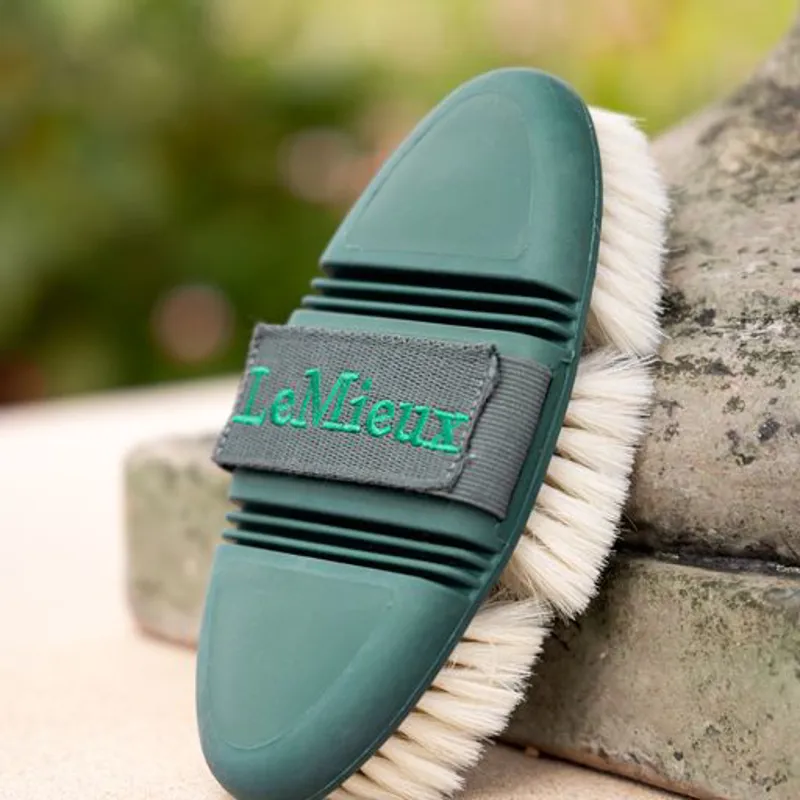 The LeMieux Flexi Goat Hair Body Brush is the perfect brush for removing fine dust and dirt from your horse, giving it that showring finish.