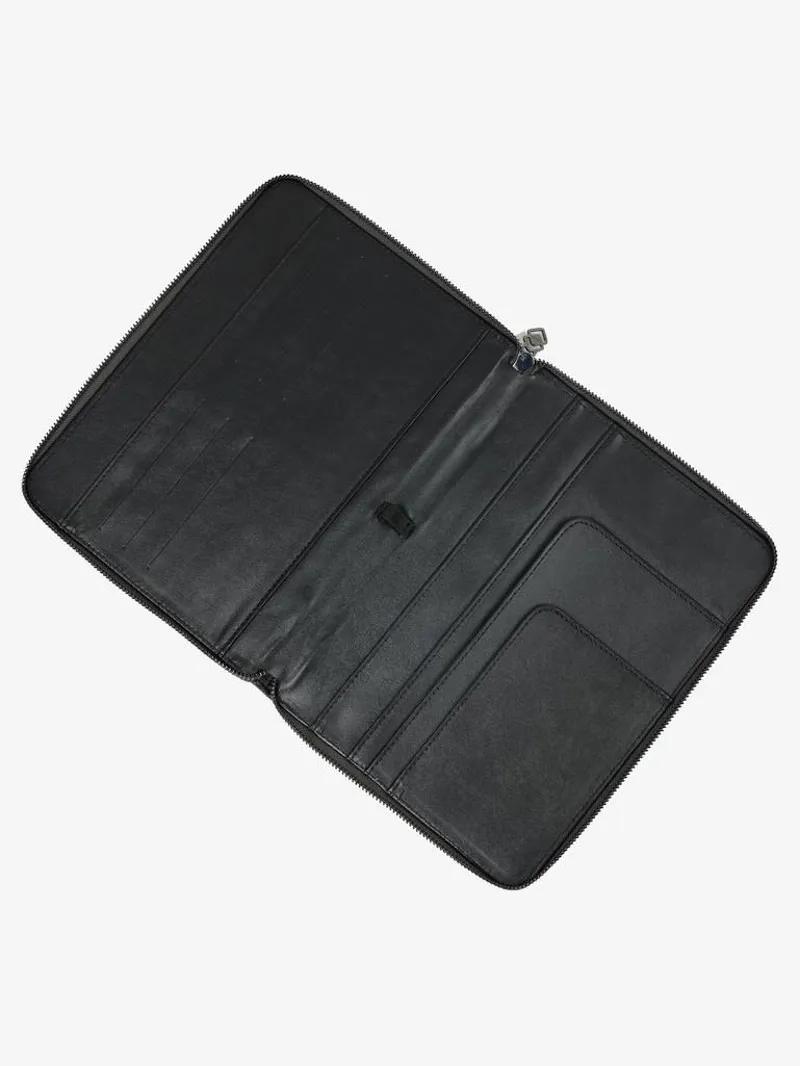 Passport Holder with multiple pockets and card slots as well as an elasticated pen loop. Zip closure for security and double diamond metal badge with rubber trim.