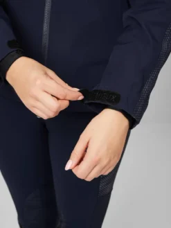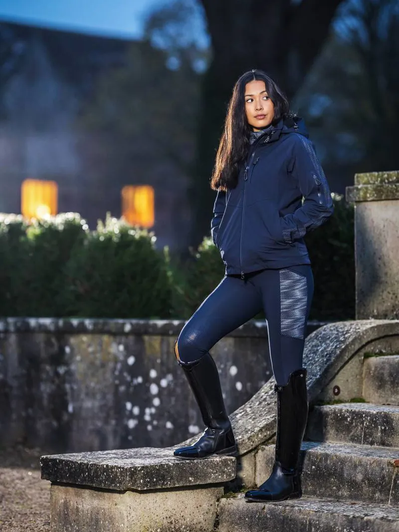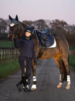 There are tonnes of handy details to shout about – like the reflective print, adjustable hood and waistband, and the warm and comfortable fleece lining. The two-way front zip allows riders to sit on their horse unrestricted while protecting the saddle from scratches.