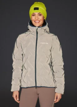 Functional light weight water- and windproof padded jacket with feminine fit. Reflective details, front pockets with zipper closure and protective high collar. Protective high foldable collar.