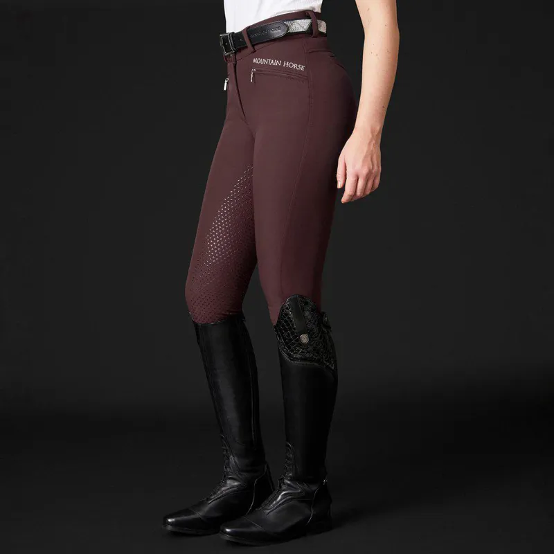 High waist breeches with fullseat silicone grip. Front pockets with Zipper closure. Flexible cuff at bottom.