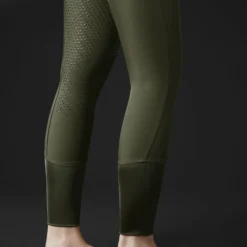 High waist breeches with fullseat silicone grip. Front pockets with Zipper closure. Flexible cuff at bottom.