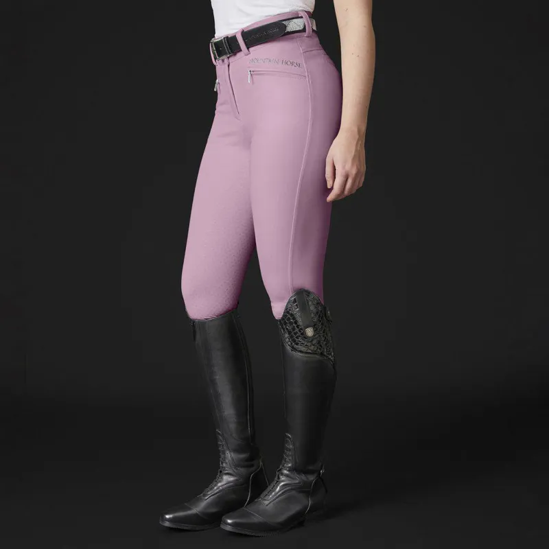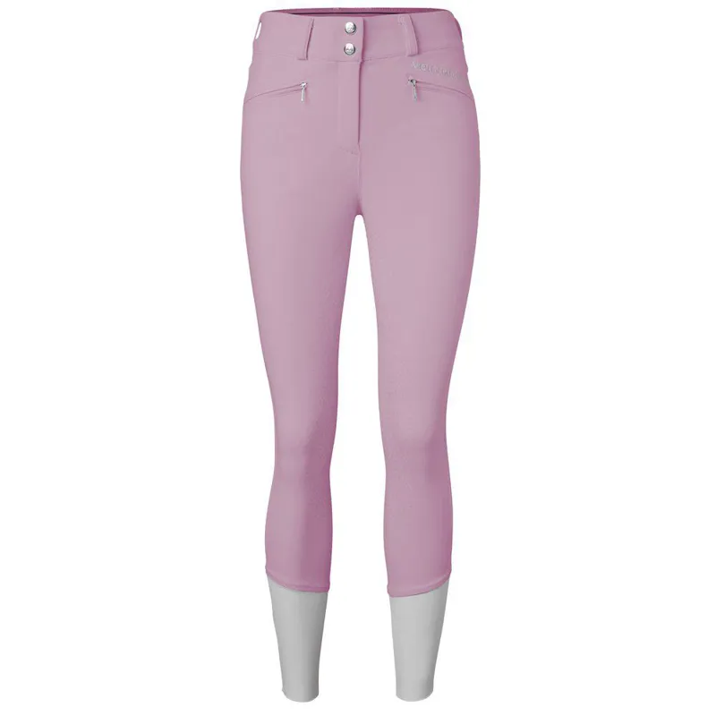 High waist breeches with fullseat silicone grip. Front pockets with Zipper closure. Flexible cuff at bottom.