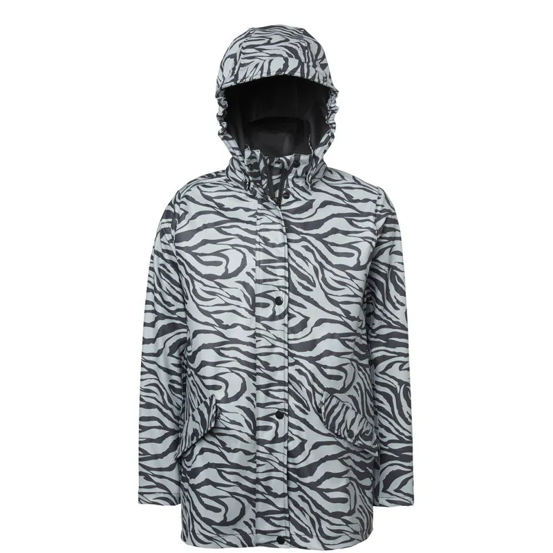 Waterproof raincoat with welded seams. Detachable hood, large front pockets. Riding slit at back and reflective details.