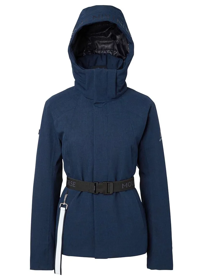 Functional light weight water- and windproof padded jacket with a feminine fit.Jacket has a detachable hood and optoinal belt.