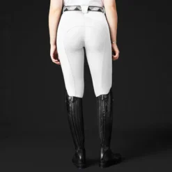 Regular high waist breeches with 3/4 full seat silicone grip. Front pockets with zipper closure. Flexible panel along leg.