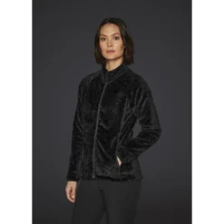 Soft pile fleece with a super comfortable and soft velvety surface, Cosy high collar and front pockets with zipper closure.