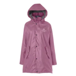 Fully waterproof rain coat with welded seams. Lined with cosy soft pile fabric. Large front pockets, Riding slit at back and reflective details.