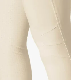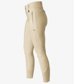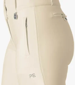 A full seat of mid weight gel provides moderate grip against the saddle and ergonomically placed pleats at the knee allow for a contoured, comfortable fit and unrestricted movement. Two non-functional front zip pockets have been integrated for a disciplined look and two non-functional rear button fastened pockets help to enhance the shape of the breech. A slider fastening secures the breeches and the waist features belt loops along with our signature PE brooch.