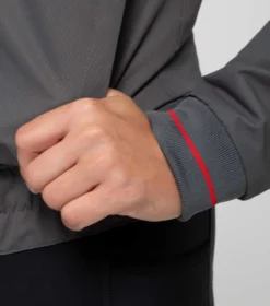 The fine ribbed cuffs and collar detailing feature a red colour pop, crafted in a fine monofilament making it perfect for sensitive skin, this material helps wick moisture and is super quick to dry. Finished with a luxury 200gsm microfleece lining which helps moderate your temperature and an internal zip for embroidery access making it idea for personalization or teamwear.