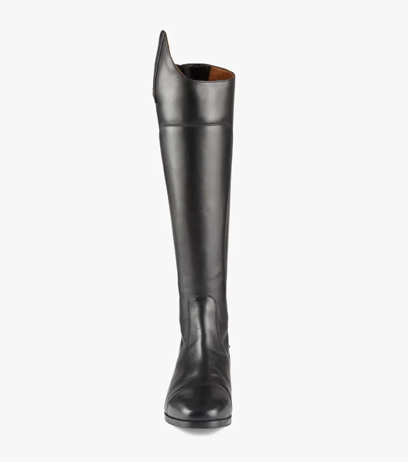 The superior cut of these dress riding boots offers a sculpting fit, enhanced by fluid style lines and a classic enclosed front. Engineered for performance these boots provide exceptional flexibility in the ankle for a soft and easy heel down position. A discreet elastic panel runs parallel to the rear zip for an improved, custom feel fit.