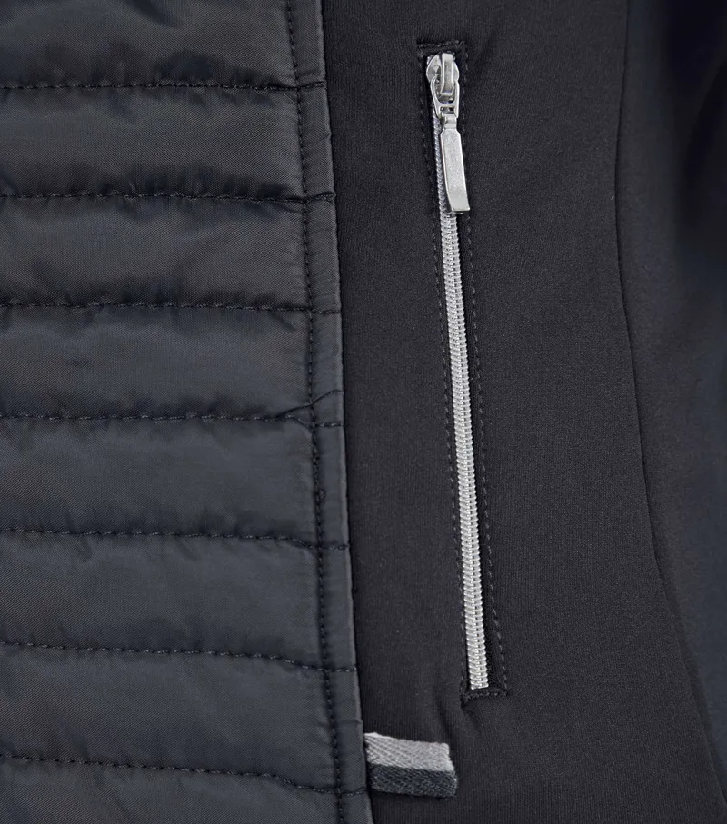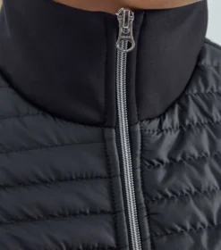 The main body of the Mini ElenaGirl’s Hybrid Riding Jacket has been engineered from a durable yet lightweight water-resistant quilted shell material to create a built-in riding gilet appearance to this jacket.