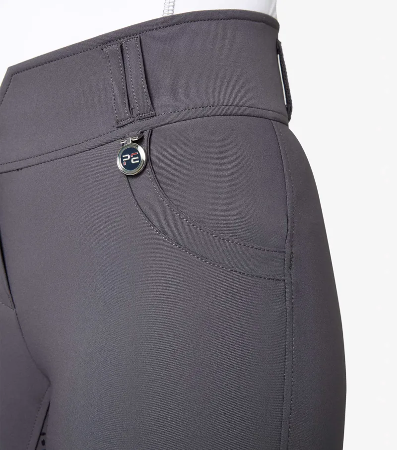 Engineered with a traditional four-way stretch fabric these ladies breeches are designed to perform, featuring an elegantly shaped high waist band which provides support to the riders core and aids in correct positioning, finished with double slider fastening for a flattening silhouette.