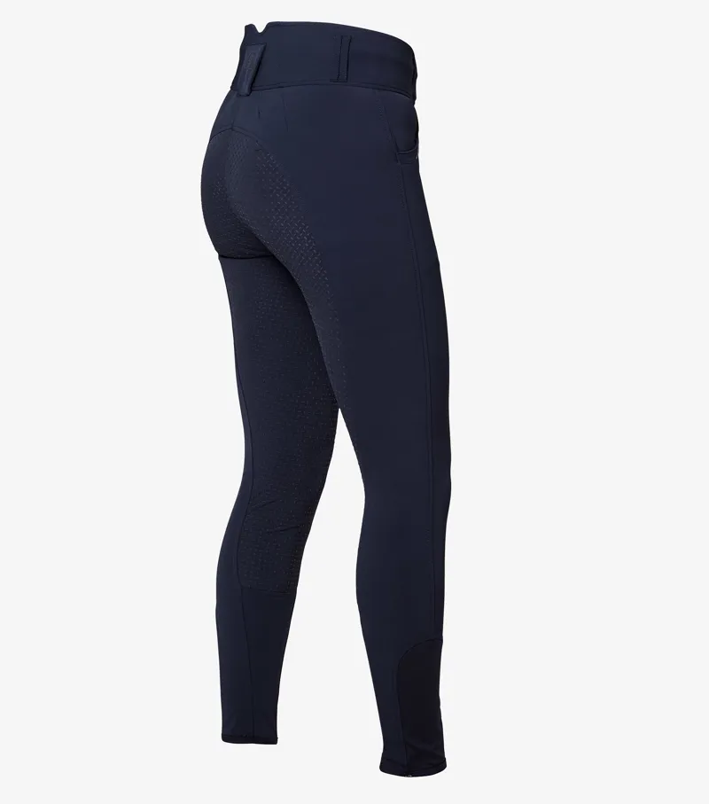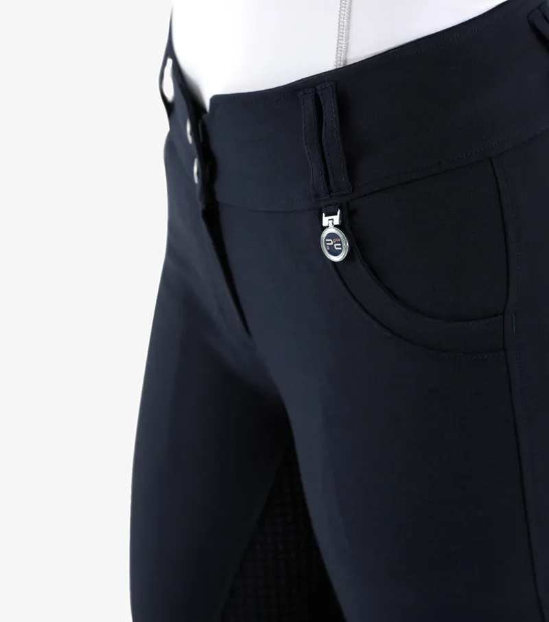 Engineered with a traditional four-way stretch fabric these ladies breeches are designed to perform, featuring an elegantly shaped high waist band which provides support to the riders core and aids in correct positioning, finished with double slider fastening for a flattening silhouette.