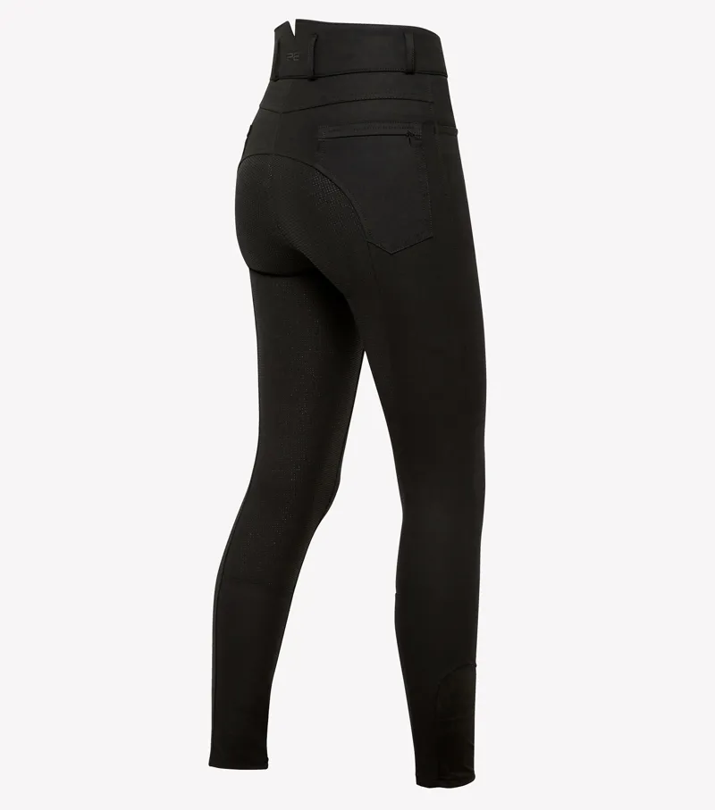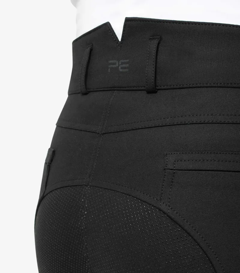 A technical gel full seat has been incorporated – helping to provide additional security in the saddle. The slightly wider waistband with elegant ‘v’ cut design at the rear provides a flattering fit and finished with a classy double-stud detail.