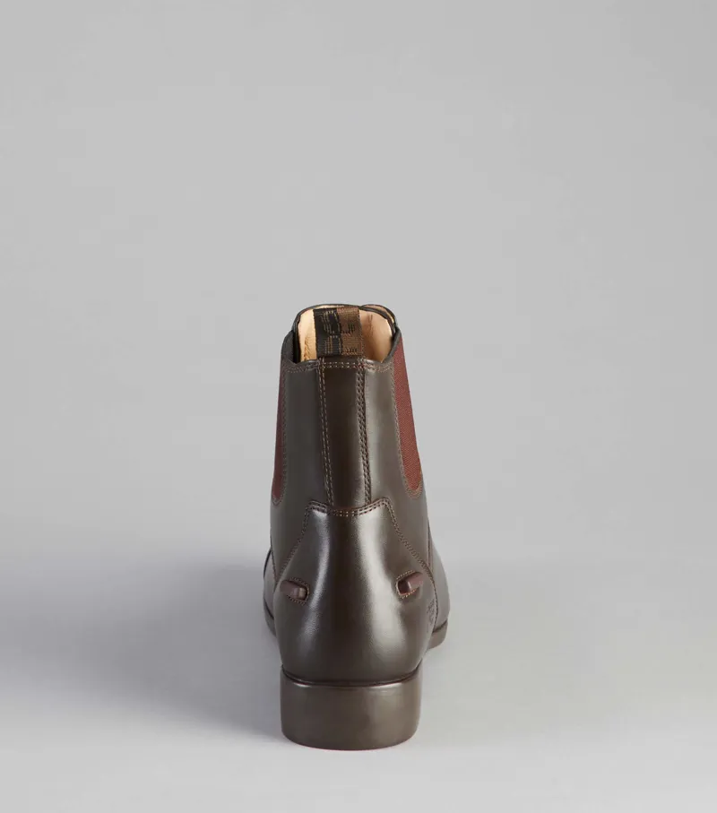 Elastic side panels improve comfort and flexibility around the ankle, making these leather horse riding boots perfect for use everyday. At the heel of the boot you will find two-point spur rests above the embossed PE branding on the outside of the boots. To provide lasting comfort, the moulded anti-slip sole has been designed to support the heel, bridge and ball of the foot whilst absorbing shock and impact from walking. Finished with a subtly branded pull tab, these comfortable short riding boots are perfect for your seasonal equestrian wardrobe.