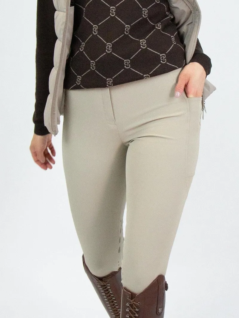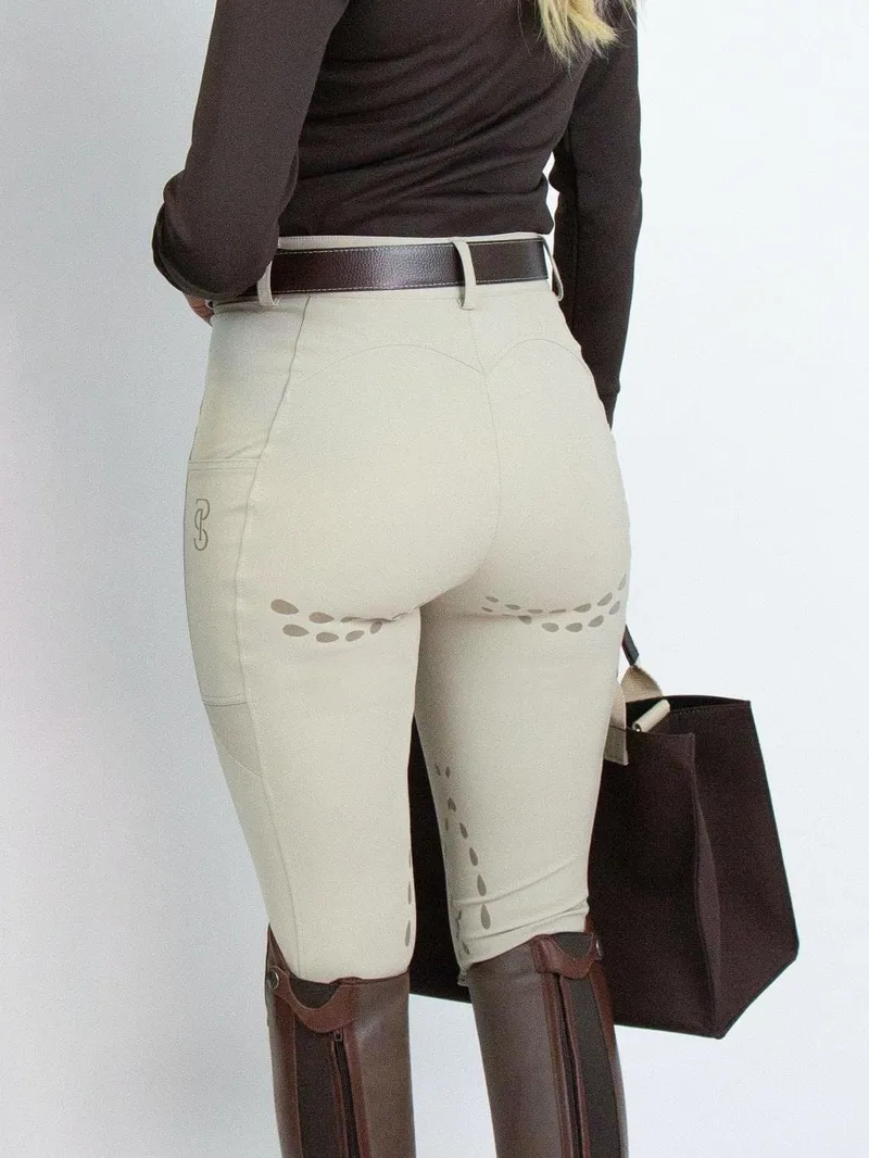 High waisted breeches with hybrid grip. Made in our four-way-stretch material that offers a figure-hugging fit and optimal movability. Tonal mesh at the leg opening create compression and ensure the breeches’ fit along the leg. Functional and stylish features such as spacious phone pockets along thighs, and PS logos.
