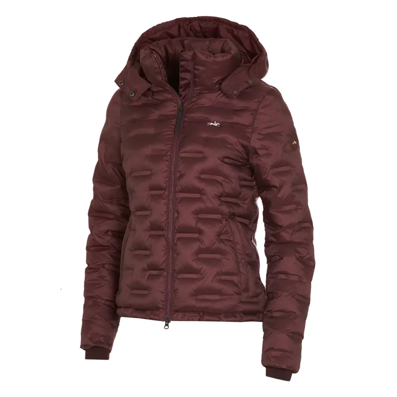 Lightweight ladies´ quilted jacket | fitted form | water-repellent | bonded fancy quilting | vegan filling | high flattering collar | detachable hood | welt pockets with zip | sporty 2-way-zip in the centre front | inside breast pocket | jersey cuff on sleeve | logo rubber badge on left sleeve | horse embroidery on chest