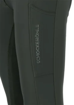 Silicone print is not for you? Then Schockemöhle Sports has the solution: thesporty women’s breeches Celine FS have a full seat made of high-qualitystretch imitation leather. The imitation welt pockets at the back arestudded with rhinestones and give an elegant look. Rounding out the CelineFS breeches are the side cell phone pockets and welt insert pockets, whichfeature rhinestones. From a functional point of view, the Celine FSbreeches score with their shape-retaining but elastic material, whichdries quickly with its breathable properties and optimally removesmoisture.