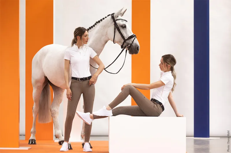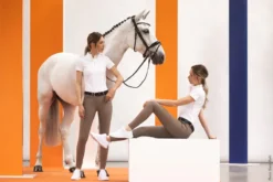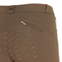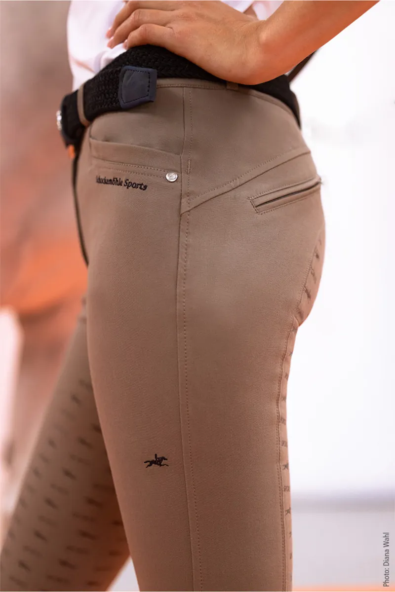 The durable ladies breeches Cindy FS/ Loretta KG by Schockemöhle Sports are areliable companion in the saddle. They are suitable for daily training,but also cut a fine figure at horse shows. The silicone full seat / kneegrip provides a safe feeling on horseback, in addition, the high-qualitymaterial is breathable. But these breeches do not only score with theirfunctional features, but can also convince with their sporty-elegant look.Real eyecatchers are the logo embroidery on the back belt loop, logorivets on the pockets and the curved yoke seam, which appears especiallyflattering at the same time. Even more wearing comfort is guaranteed bythe elastic cuffs at the hem.