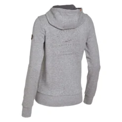 So comfortable, that you actually don’t want to take it off: the ladies’sweat jacket Cora by Schockemöhle Sports! The soft cotton fabric keeps youwarm and is particularly pleasant to wear. The jacket has a waisted shapeand a hood with contrast coloured lining, which is adjustable. Additionalfashionable details are the coloured cords and a logo embroidery kepttone-in-tone on the back.
