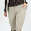The durable ladies breeches Cindy FS/ Loretta KG by Schockemöhle Sports are areliable companion in the saddle. They are suitable for daily training,but also cut a fine figure at horse shows. The silicone full seat / kneegrip provides a safe feeling on horseback, in addition, the high-qualitymaterial is breathable. But these breeches do not only score with theirfunctional features, but can also convince with their sporty-elegant look.Real eyecatchers are the logo embroidery on the back belt loop, logorivets on the pockets and the curved yoke seam, which appears especiallyflattering at the same time. Even more wearing comfort is guaranteed bythe elastic cuffs at the hem.