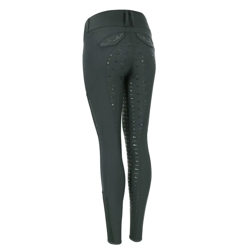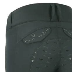 May it be a little more fancy? The elegant women’s premium breeches Noelle FSand Darleen KG offer that little bit extra for fashion-conscious femaleriders. The new breeches from Schockemöhle Sports come with slide-inpockets and flaps decorated with pretty rhinestone details. The rear yokewith inserted pockets is just as eye-catching as the high waistband withtwo Gutos logo buttons. The side cell phone pockets prove to be practical.The women’s breeches Noelle FS (full seat) and Darleen KG (knee seat) aredimensionally stable, but elastic and made of quick-drying, breathablematerial that quickly removes moisture.